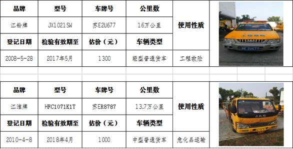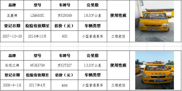 根据《国产成人直播 有限责任公司资产处置管理办法》,经城投公司批准,拟对我公司苏E2N049等6辆报废车辆作拍卖处理,现将拍卖公司评估价格及车辆信息公示如下: