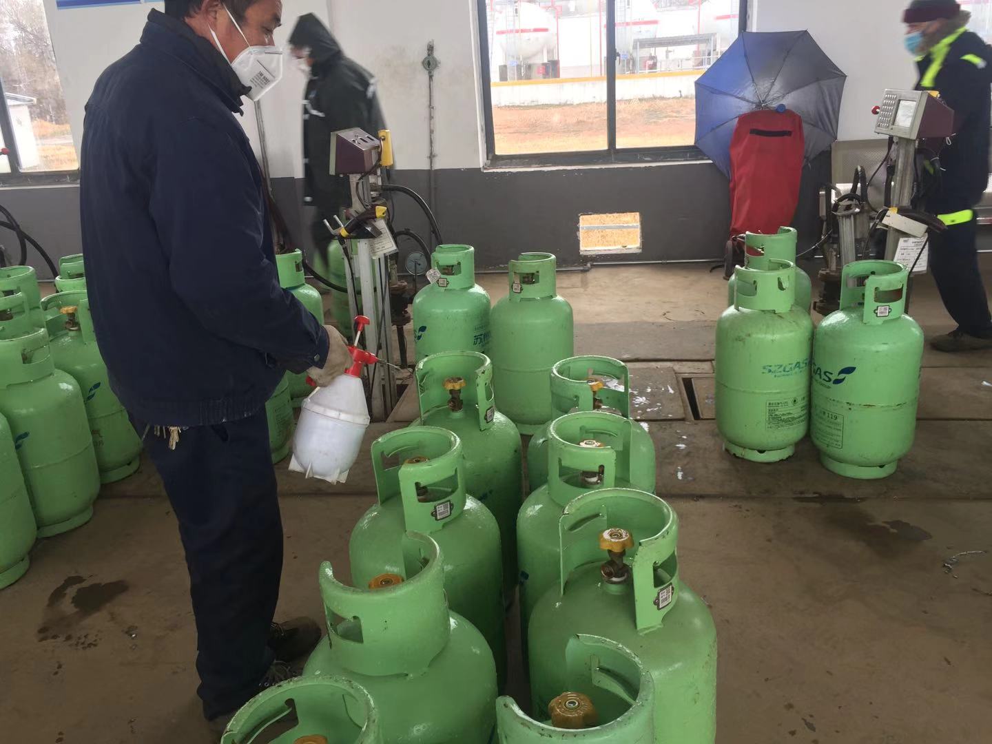 二是落实制度,严把人员、车辆、钢瓶进出关。公司2座储配站、20个供应站每天正常营业,储配站对所有进出运输车辆及钢瓶进行消毒处理,供应站做到钢瓶不消毒不出库、配送人员不佩戴口罩不配送,严控病毒通过钢瓶接触传播。