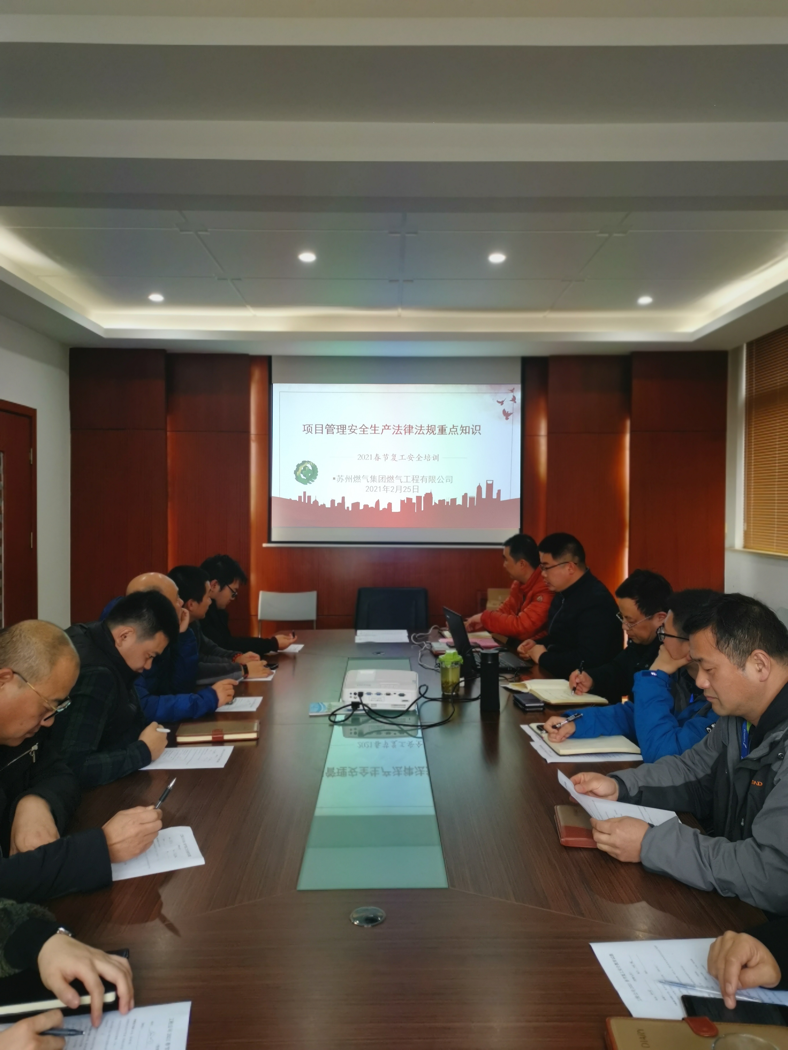 2020225日下午,燃气工程公司组织开展春节后复工动员大会和安全生产知识培训。会上,首先公司领导要求各部门保持良好的工作状态,认真落实各项工作,进一步提升公司的施工能力。同时号召全体员工强化安全红线意识,以攻坚克难、敢于担当的精神状态保质保量完成年度施工生产任务。