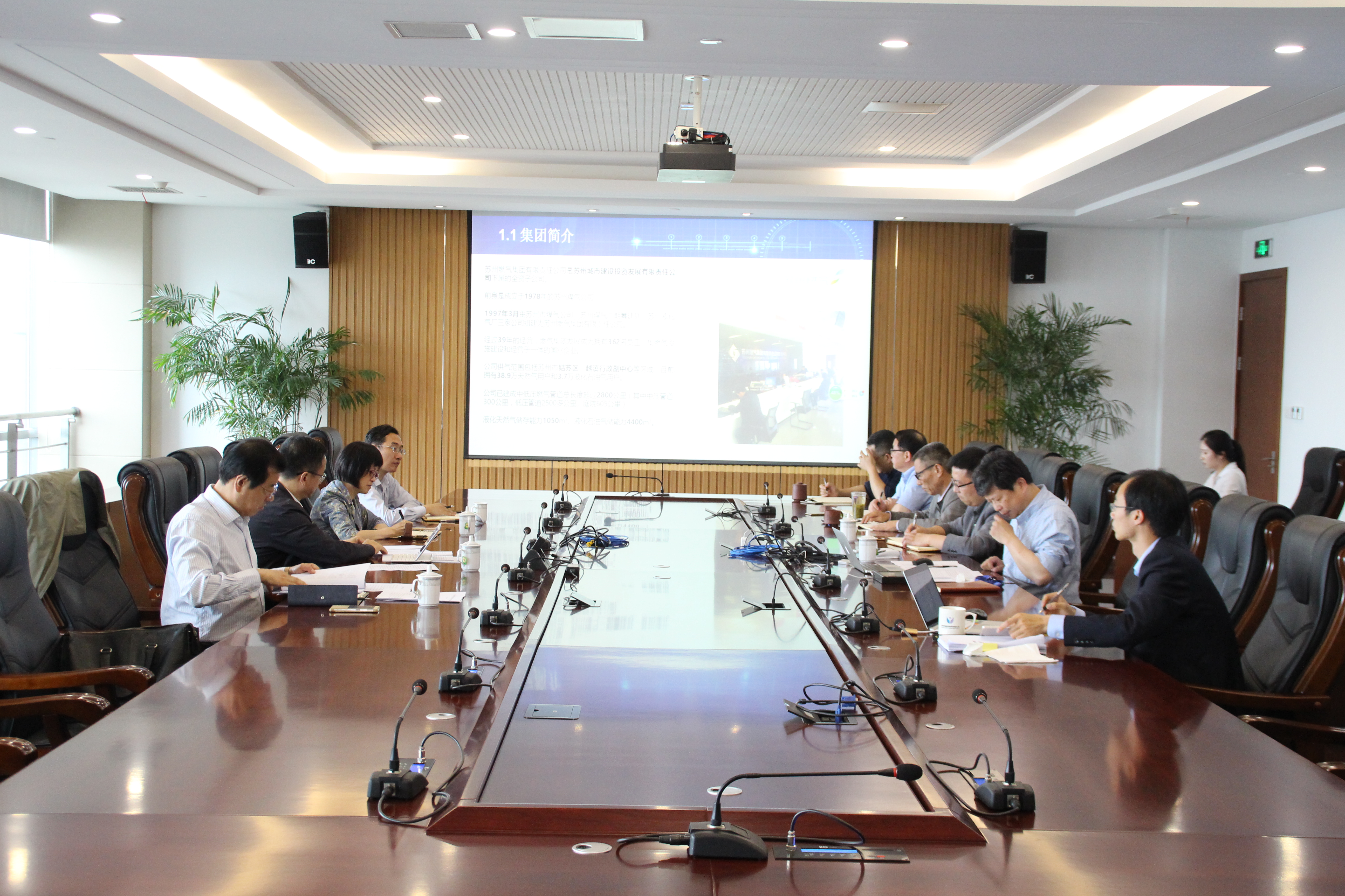 座谈会上,蒋学明董事长首先对集团历史沿革、治理模式、组织架构、业务范围等进行了详细介绍。随后着重讲解了集团正在运营或建设的燃气安全营运监控指挥系统、液化石油气安全智能配送系统、客户发展智能综合管理系统、燃气发展项目建设综合管理系统的相关情况。最后,介绍了国产成人直播 燃气科技研发规划等相关内容。