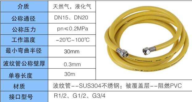 埋墙用不锈钢环形波纹包塑管选用304不锈钢制成,适用于燃气表具与室内燃气用具(热水器,壁挂炉等)之间的柔性连接。该产品可暗埋、耐腐蚀、密封性能好、柔软性能卓越、管体寿命最长可达50年,是传统铝塑复合管等管路材料的理想替代品。