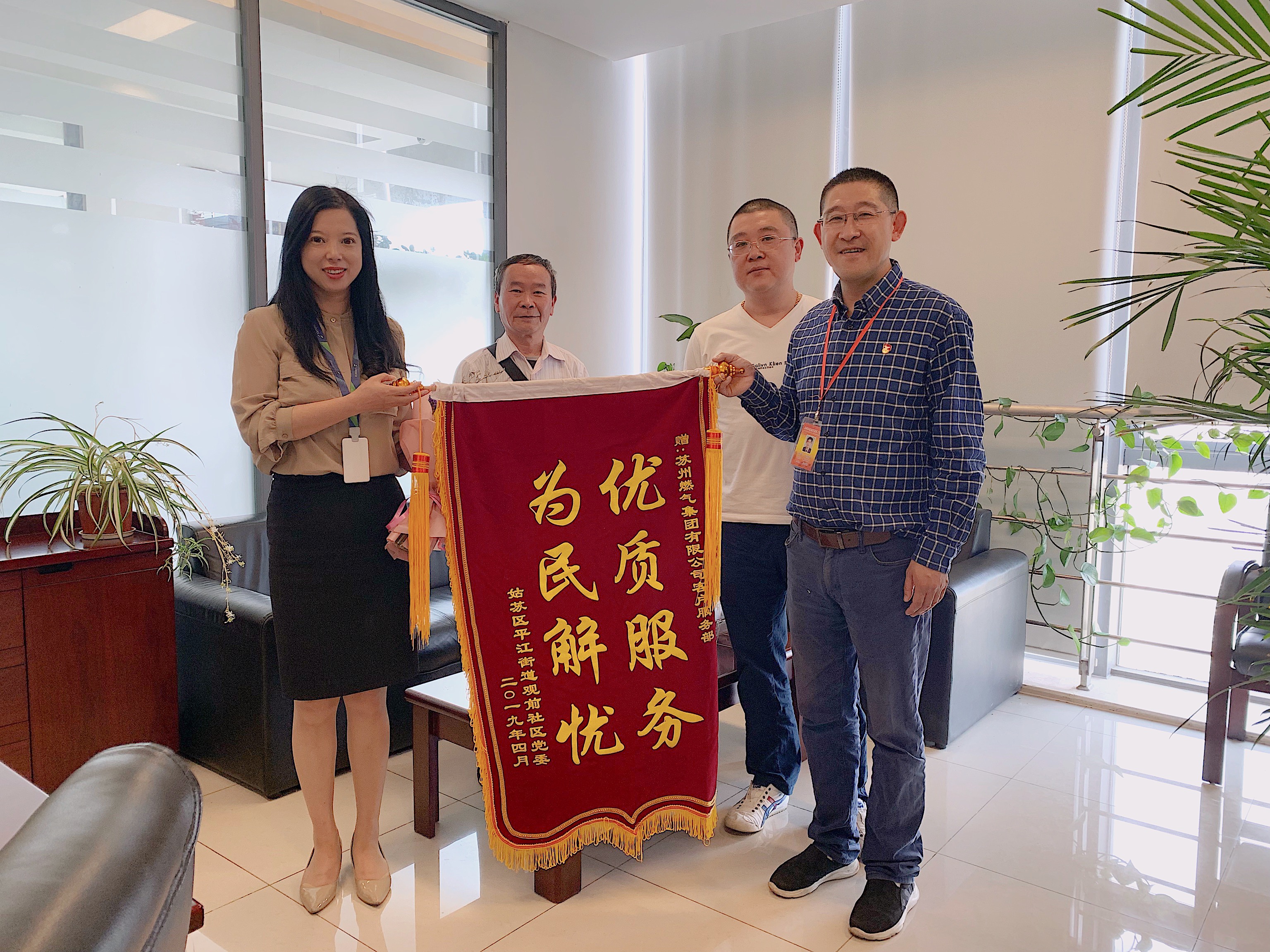 ,送上了锦旗,表达居民对开通天然气的感谢之情。